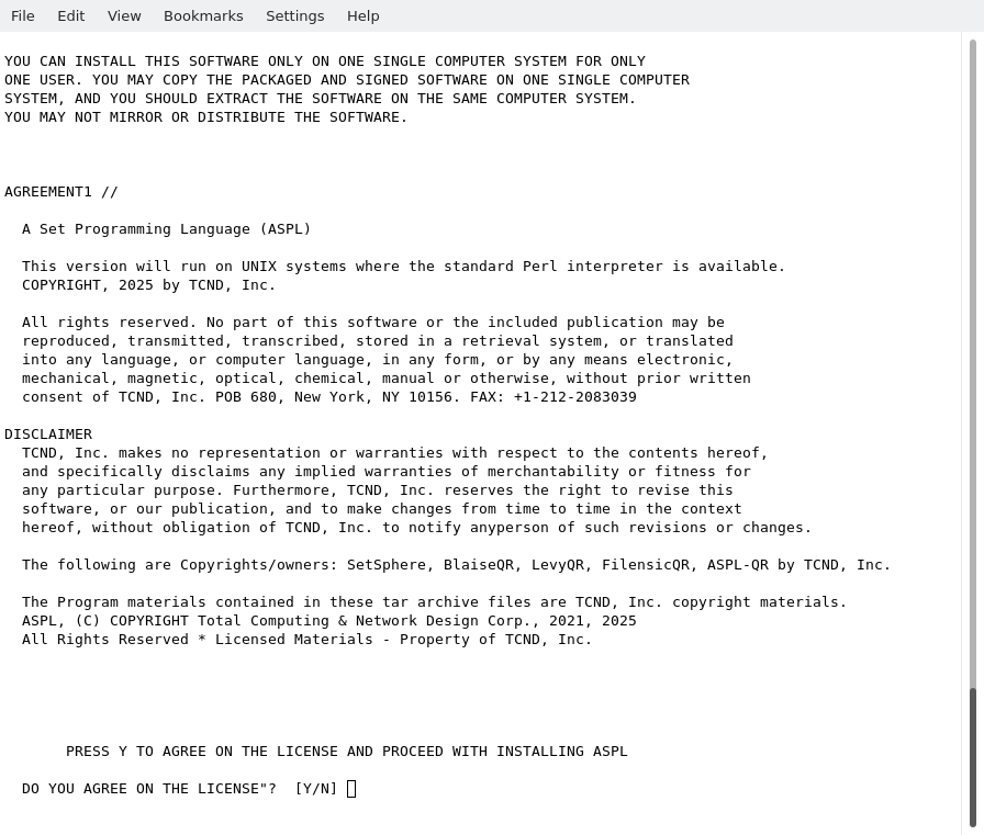 The following installation is termed ASPL install with itype 1 to refer to a single-user installation of the ASPL distribution. It applies to any of one of the three ASPL distributions: ASPL Standard, ASPL Professional, or ASPL Enterprise.