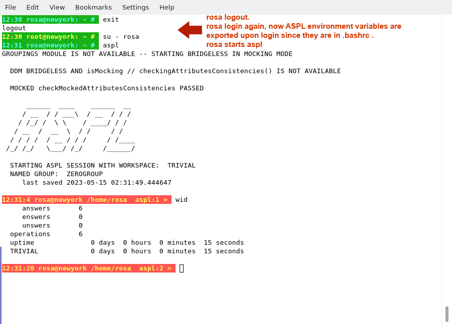 The figure shows how rosa sourced the bash environment and started using ASPL.