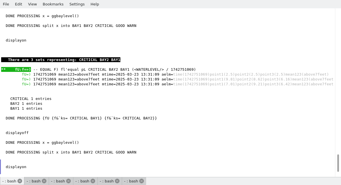 The following script monitor the water level between BAY1 and BAY2. The script shows when the water level is critical.